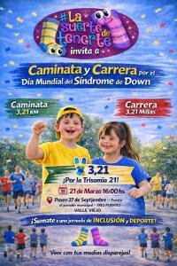 Organizada por el grupo de padres "La suerte de tenerte" y bajo el lema “El amor no cuenta cromosomas", la misma tiene largada y llegada en el parador de Valle Viejo, y las distancias serán de 3 Km participativa y 5 Km competitiva. El recorrido comprenderá: Parador - Rotonda Ruta 1, Ruta 1 - Rotonda Camino a la Virgen, y regreso al Parador; siempre por Avenida Costanera.
