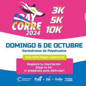 01/10/2024 | Organizada por la Municipalidad de Fray Mamerto Esquiú, este domingo 6 se concretará la prueba atlética “Fray Corre” en 3, 5 y 10 Km.