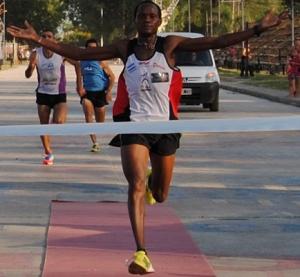 27/07/2013 | El keniata Ismael Langat y la santamariana Lorena Acosta triunfaron este sábado 27 en la 2da. edición del Maratón “Poncho 2013”, realizada en el Predio Ferial.
